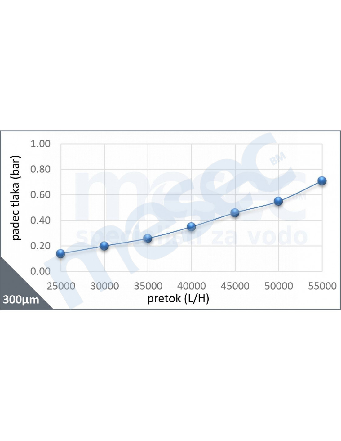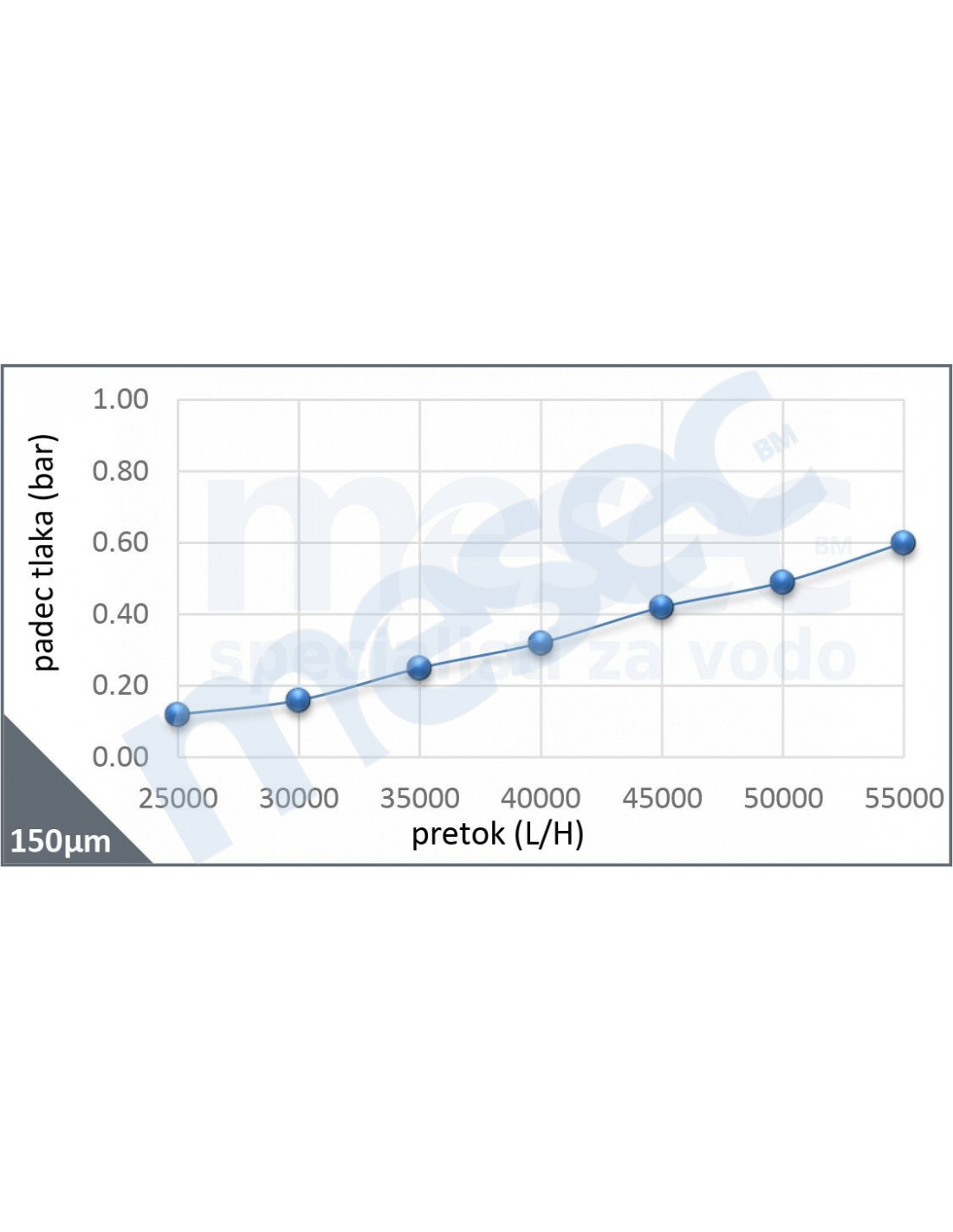 - Protok kroz filter pri padu tlaka deltaP=0,2 bar (m3/h): 32.