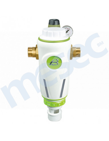 Ručni samočisteći filter serija BravoFIL Plus s ugrađenim regulatorom pritiska i protupovratnim ventilom. Namijenjen je za mehaničko filtriranje vode za kućnu i industrijsku uporabu. Regulator pritiska brine za konstantan tlak u vodovodnom sustavu. Nehrđajuća filterska mrežica (89 ili 30 mcr) pruža učinkovitu zaštitu od u vodi netopljivim česticama pijeska, hrđe, kamenčića...