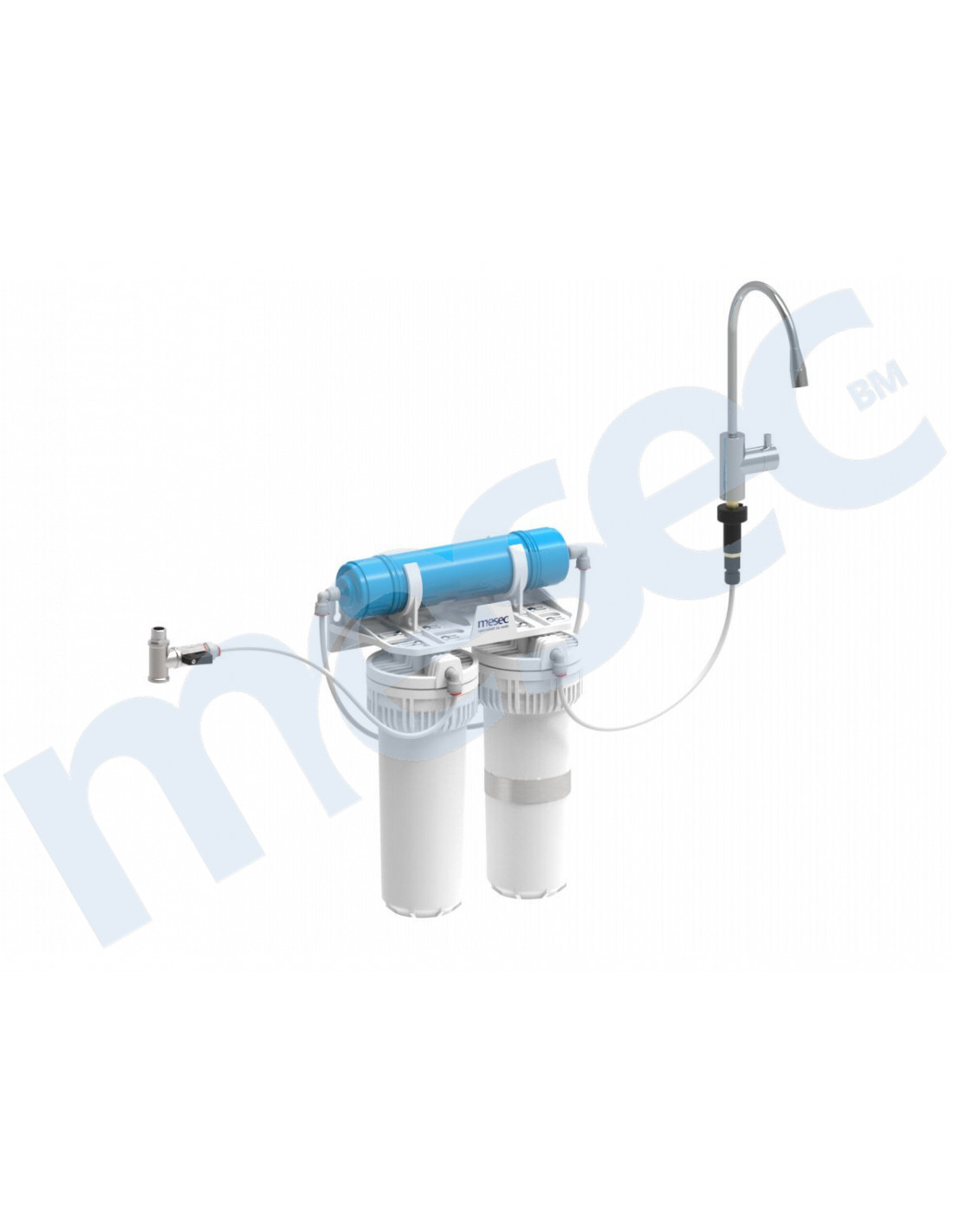 Ispodpultni pročišćivač uobičajeno montiramo ispod sudopera/pulta. Na sudoper/pult montiramo slavinu AK15 iz seta, iz koje točimo pročišćenu vodu. Postoji i mogućnost direktnog prikljućenja na jednu glavnu kuhinjsku slavinu s trojnim izlazom (kuhinjske slavine MESEC AGM).