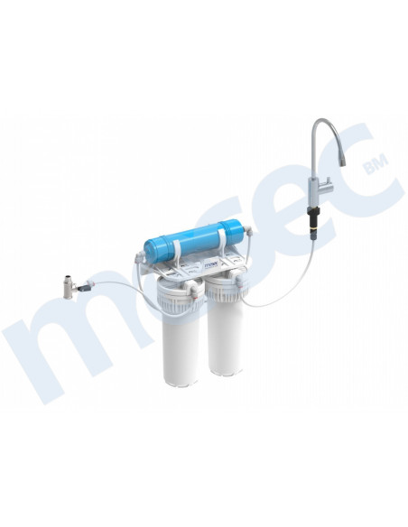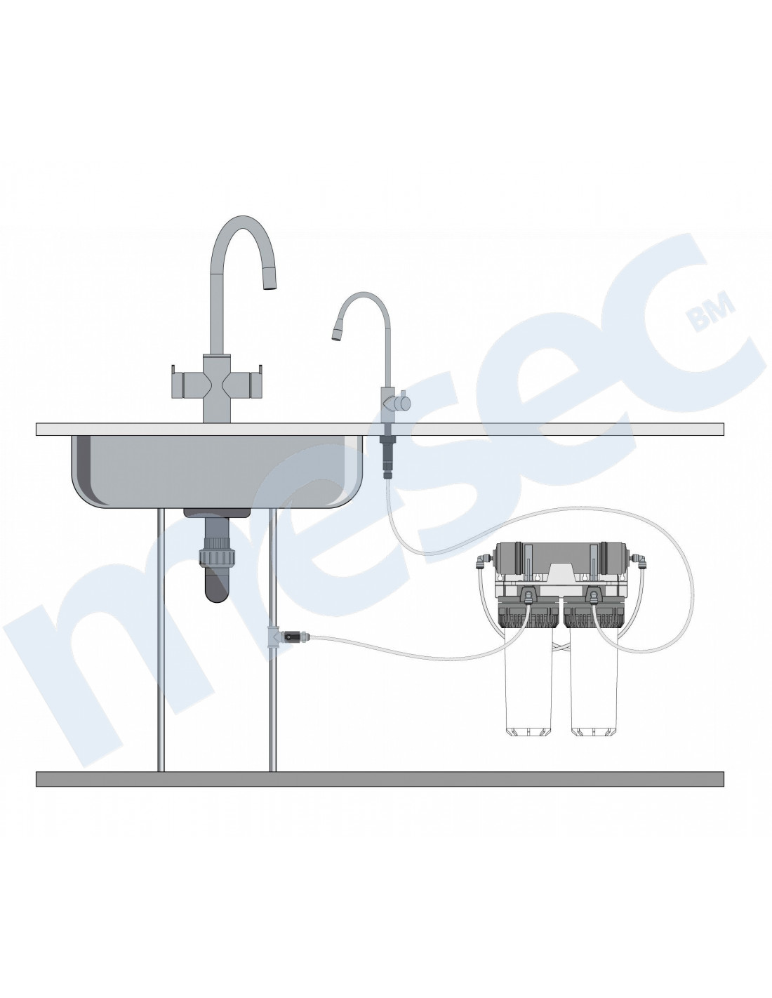 Ispodpultni pročišćivač uobičajeno montiramo ispod sudopera/pulta. Na sudoper/pult montiramo slavinu AK15 iz seta, iz koje točimo pročišćenu vodu. Postoji i mogućnost direktnog prikljućenja na jednu glavnu kuhinjsku slavinu s trojnim izlazom (kuhinjske slavine MESEC AGM).