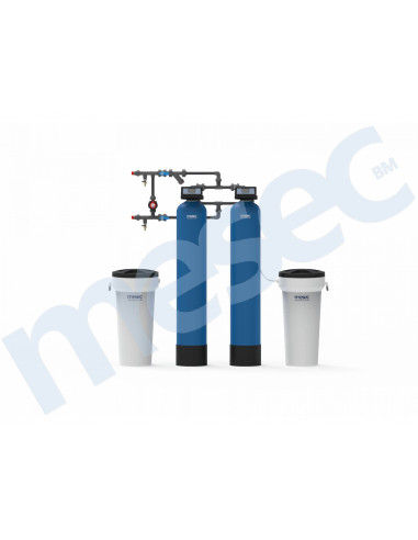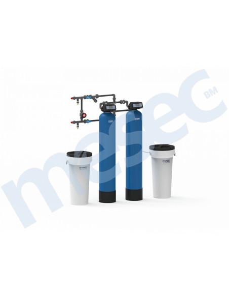Popolnoma avtomatska dvojna paralelna ionska mehčalna naprava z volumetričnim in časovnim krmiljenjem. Mehčalna naprava ima dve tlačni posodi iz armiranega polietilena. Vsaka enota ima svojo solno posodo iz visoko odpornega polietilena (HDPE) in krmilnik iz ABS. Paralelna vezava omogoča dvakrat višji pretok v primerjavi z dvojnimi mehčalnimi napravami in hkrati tudi neprekinjeno dobavo mehke vode. Krmilnika sta povezana s komunikacijskim kablom, ki uravnava medsebojno delovanje obeh naprav. V obseg naprave je vključen obvoden sistem z enotnim priključkom iz PVC-U materiala.