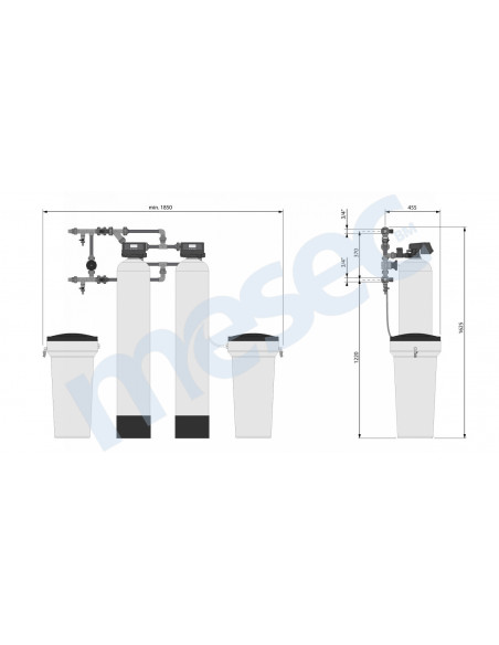 Paralelna dvojna avtomatska volumetrična mehčalna naprava primerna za pripravo pitne vode, vode v industriji in specifične aplikacije. ;