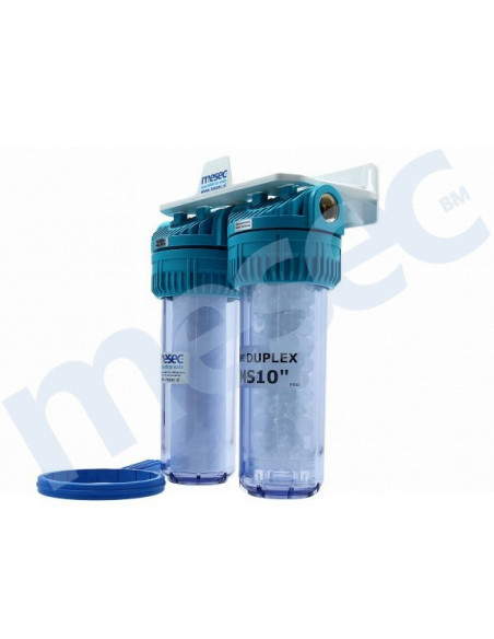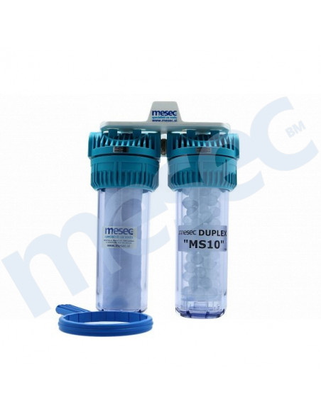 Dvo–stupanjski filterski uređaj MESEC Duplex MS10 Pro garantira odlično čišćenje vode. U kombiniranom uređaju su usporedno postavljeni filterski ulošci, prvi temeljito čisti mehaničke čestice (stupanj filtracije je 20 mcr), a drugi sprječava spoj vodenog kamenca u tvrde obloge.
