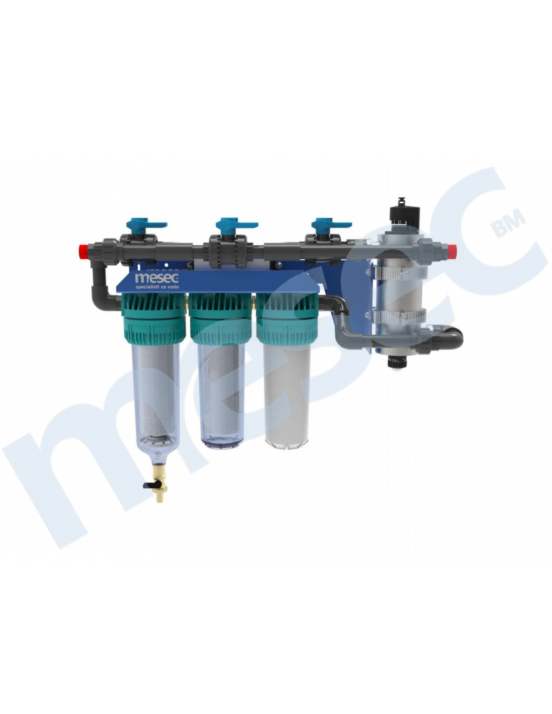 Više–stupanjski filterski sustav MESEC Triplex ZK10-i Pro garantira odlično čišćenje vode. U kombiniranom filteru je usporedno postavljenih strukovno izabranih filterskih uložaka, koji temeljito očiste mehaničke čestice (stupanj filtriranje je 5 mcr), mulj, klor, loš mjris ili okus vode.