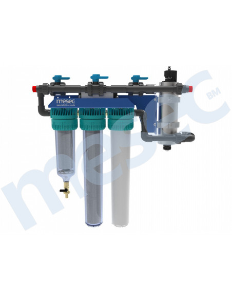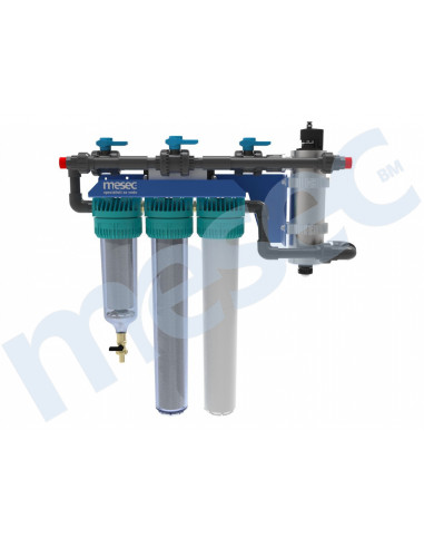 Više–stupanjski filterski sustav MESEC Triplex ZK20-i Pro garantira odlično čišćenje vode. U kombiniranom filteru je usporedno postavljenih strukovno izabranih filterskih uložaka, koji temeljito očiste mehaničke čestice (stupanj filtriranje je 5 mcr), mulj, klor, loš mjris ili okus vode.