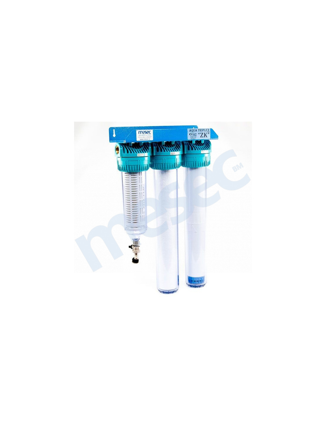 Tro–stupanjski filterski uređaj MESEC Triplex Pro "ZK20-I" garantira odlično čišćenje vode. U kombiniranom uređaju su usporedno postavljeni filterski ulošci, koji temeljito očiste mehaničke čestice (stupanj filtracije je 5 mcr), mulj, klor, loš miris i okus vode. Na prvom kućištu je ugrađen ispusni ventil, za jednostavno ispiranje nečistoće bez otvaranja kućišta.