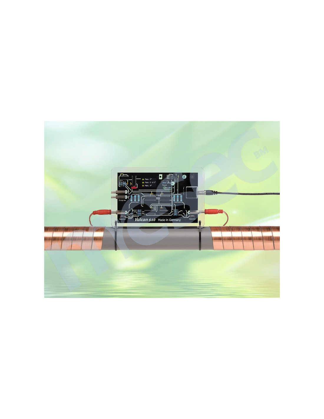 VULCAN je učinkovit neutralizator vodenog kamenca i korozije, koji fizikalno (bez upotrebe kemijskih sredstava ili soli) utječe na rastopljen kalcijev hidrogenbikarbonat u vodi (vodeni kamenac) i tako sprječava taloženje vodenog kamenca u cijevima, na grijačima, sanitarnim armaturama itd.